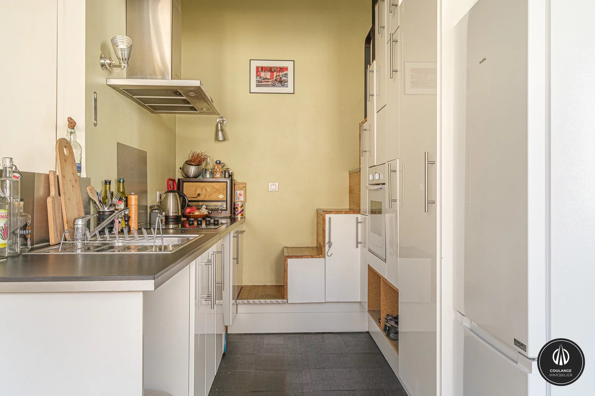 L’appartement se compose, au premier niveau, d’une belle pièce de vie lumineuse avec salon, séjour et cuisine ouverte équipée, offrant un espace convivial et fonctionnel, ainsi qu’un WC indépendant.