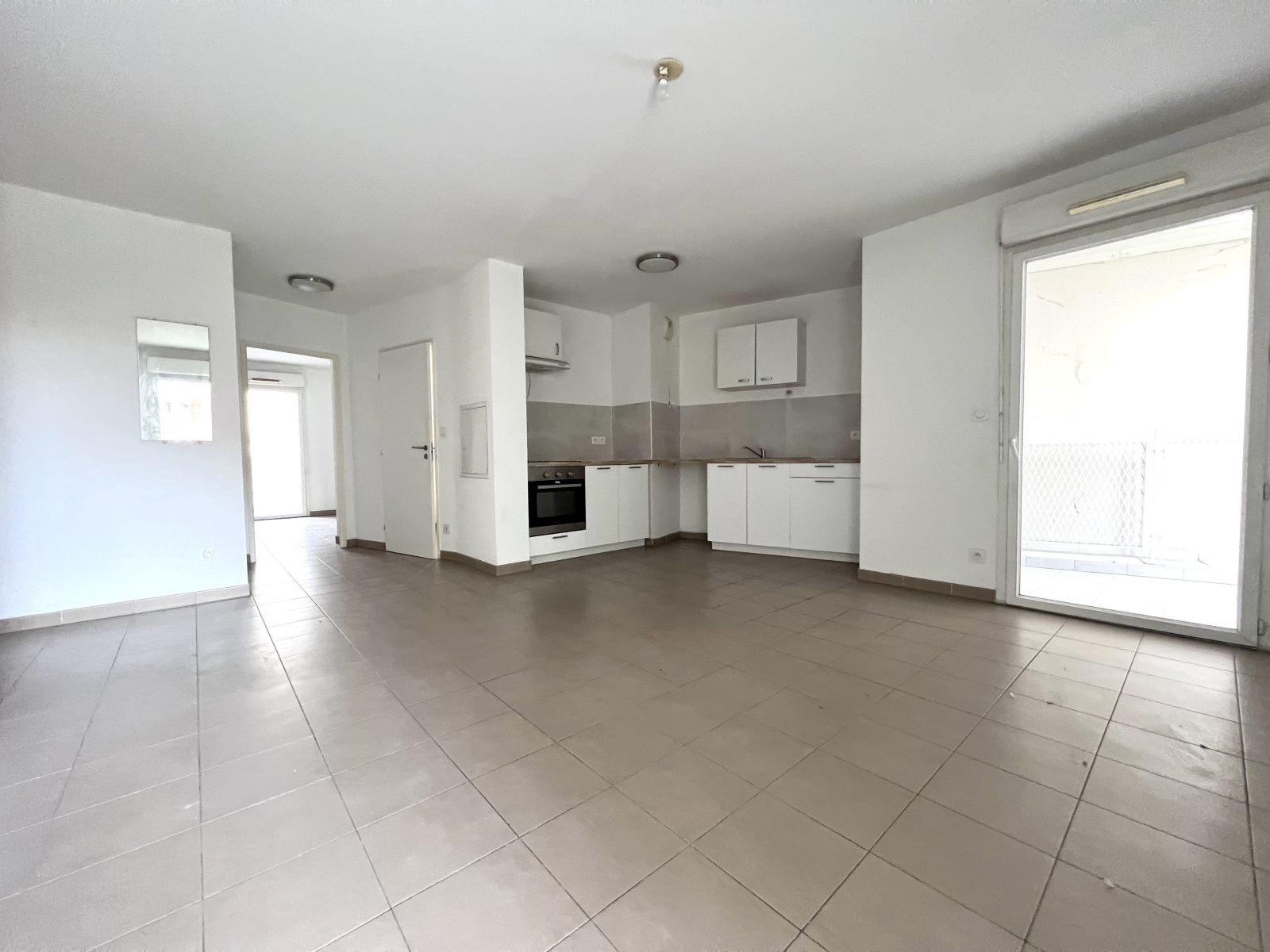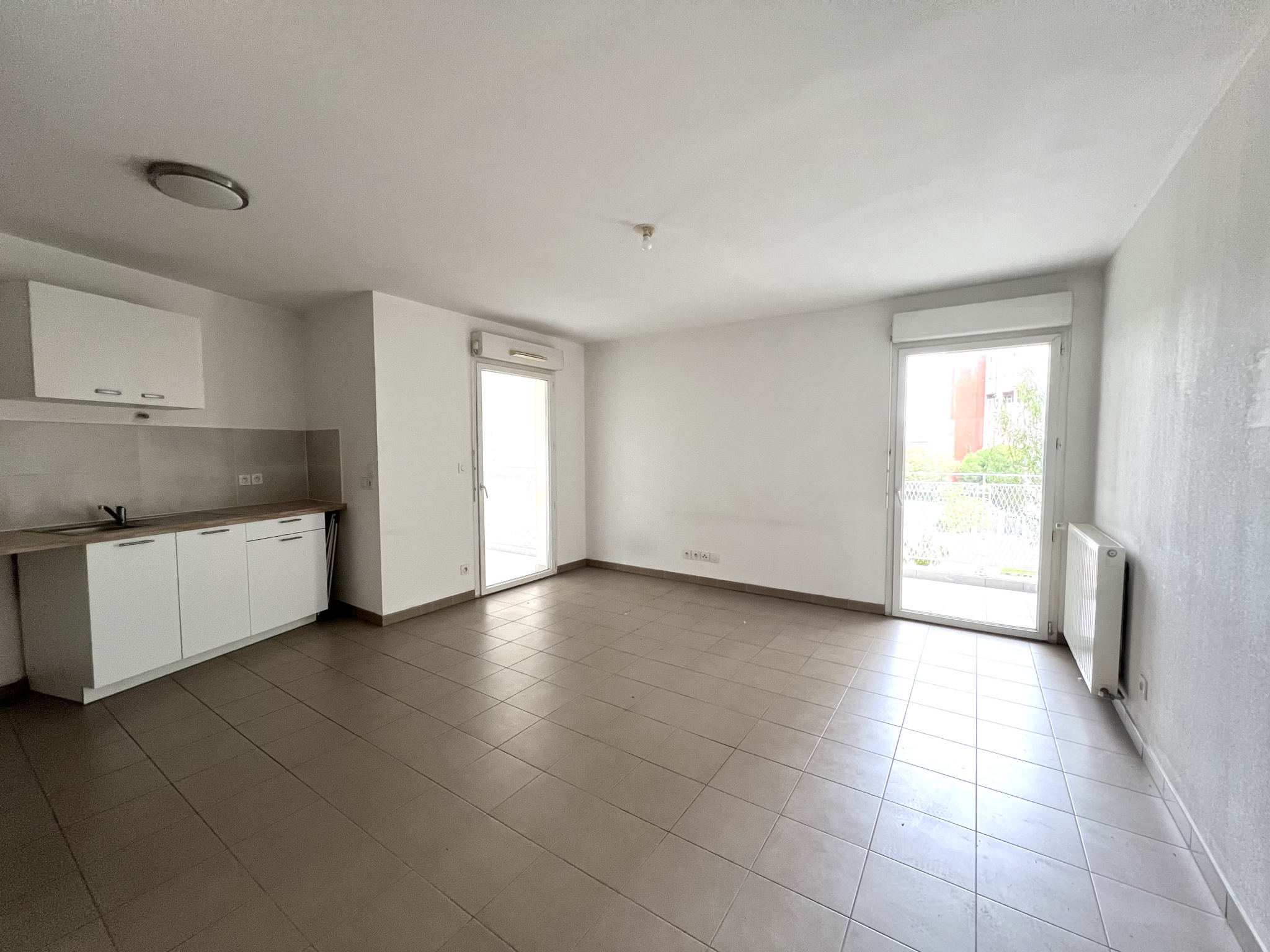 Il se compose d’une entrée ouvrant sur un séjour/salle à manger avec cuisine ouverte, donnant sur deux balcons.